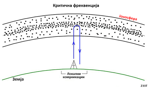 При радио комуникациите на голема далечина во краткобрановото подрачје се користи појавата на рефлексија на радиобрановите од јоносферата. Притоа, Критична фреквенција се нарекува највисоката фреквенција, при која радиобрановите кои се емитуваат од Земјата вертикално нагоре кон јоносферата, се уште се рефлектираат од даден јоносферски слој. Критичната фреквенција се определува со уред кој емитува импулсни радиосигнали вертикално нагоре и кој потоа ги прима одбиените сигнали од јоносферските слоеви. Притоа се мери времето од емитуваниот радиоимпулс до приемот на одбиениот сигнал, па така се определува и висината на јоносферскиот слој од кој е рефлектиран сигналот. Сигналите се емитуваат на различни фреквенции, почнувајќи од пониски кон повисоки, па се доаѓа до момент кога над определена фреквенција радиосигналите веќе не се одбиваат од јоносферата туку проаѓаат низ неа во космосот. На тој начин се определува највисоката фреквенција на радиосигналот при која, кога се емитува вертикално нагоре, се уште се рефлектира назад кон Земјата. Така се определува критичната фреквенција.