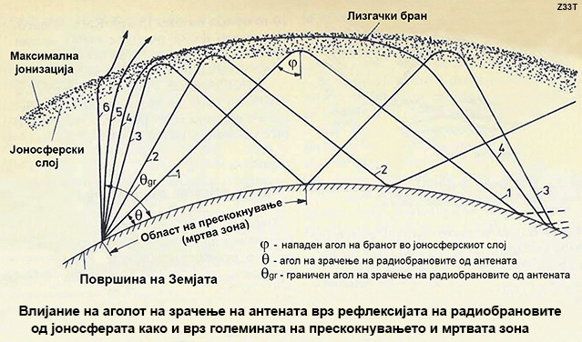 Колку е поголем (повисок) аголот на емитуваните радиобранови од антената кон небото, толку брановите ќе се рефлектираат од повисоките делови на јоносферата, а дометот на радиобрановите, односно прескокнувањето ќе биде пократко.
