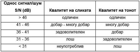 Субјективната оцена за квалитетот на приманата ТВ програма (слика и звук) е сврзана со определен однос на сигнал/шум на влезот на приемникот.