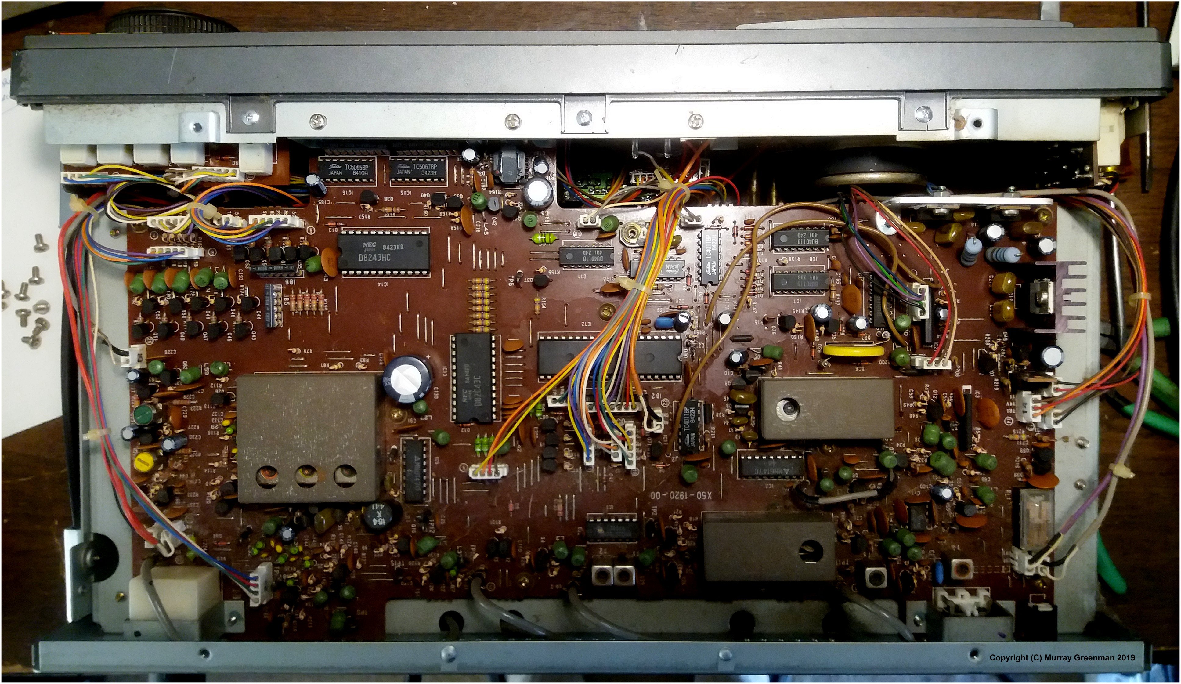 The receiver is cosmetically in reasonable condition, with minor damage and a scratched top cover. Electrically it is in excellent shape. When it arrived there was one annoying fault - the display occasionally went out and the receiver stopped, probably due to a bad connector. I wiggled and removed all the connectors, and I believe that's now fixed.