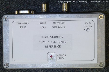 This design came about as a result of efforts to design a high stability reference which locked to a 10MHz source. With some minor hardware adaptation and completely new firmware, it proved possible to design an excellent GPS Disciplined Oscillator (GPSDO) using the same circuit board.The design gently locks a high performance 10MHz OCXO to the GPS or other 1pps reference, and is capable of providing an accurate reference, with high stability at the level of a few parts in 1012. The unit operates without requiring any intervention or control. A serial link provides telemetry and a user-set real-time clock. Controls are provided for initial calibration. The OCXO sine wave output can drive 50 Ohm loads (1V p-p). There is also an optional regenerated CMOS 1pps output which can be used to operate other devices, and it would be easy to swap this for a CMOS 10MHz output instead.