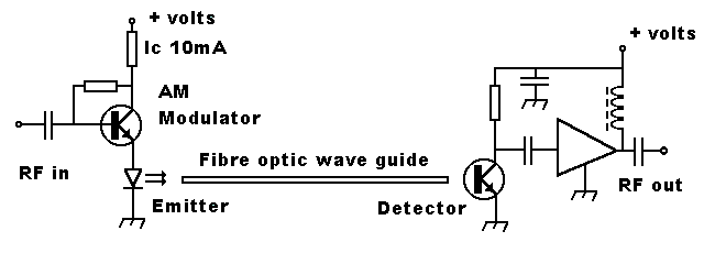 The are many possible uses for this technology, if you have a modulation bandwidth of 40 MHz to 2.5 GHz. All of the VHF and the UHF Television channels as well the satellite IF of 900 to 2150 MHz can be feed into the optical cable. It can also be used for a security surveillance system where a group or groups of video signals need to be fed from one building to the next. Other uses could be at repeater sites where there are two huts, one for receive and the other for transmit, using the Fibre optic waveguide to interconnect the two buildings.