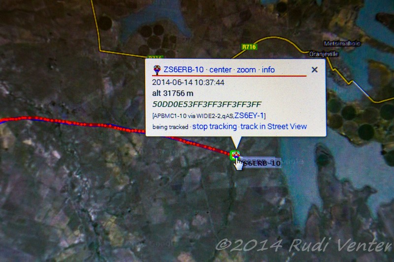initial launch of the balloon was from Klerksdorp, about 120km away. I had to