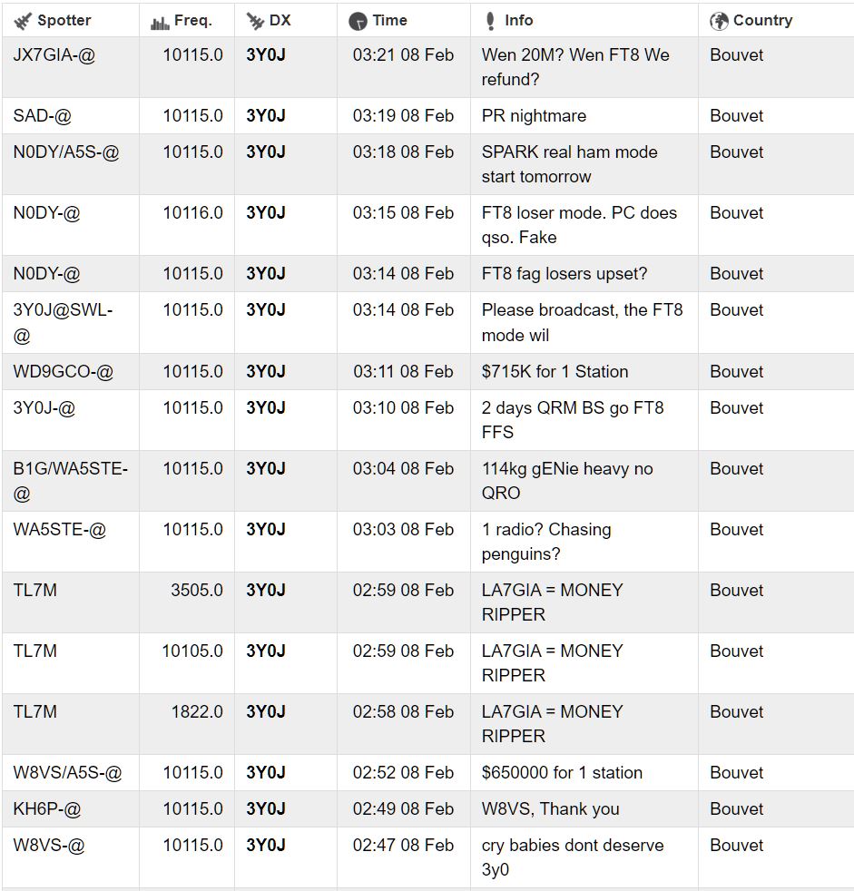 Bouvet Isle, I managed to work them on a few bands when many with better