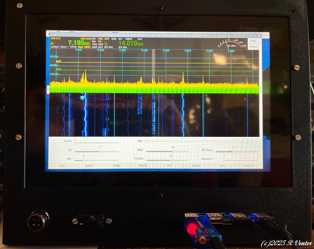(8GB) running PiHPSDR software. The radio has a 10.1" touch screen as well as